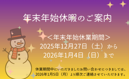 年末年始休暇のお知らせ